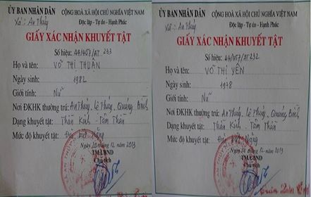 Giấy chứng nhận khuyết tật của hai chị