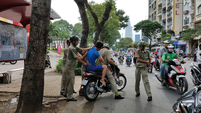 Sáng nay lực lượng chức năng tiến hành truy xét những người nghiện, người lang thang ở trung tâm Sài Gòn. Nhiều đối tượng bỏ chạy tán loạn, có người thì chống trả lại công an để tẩu thoát.