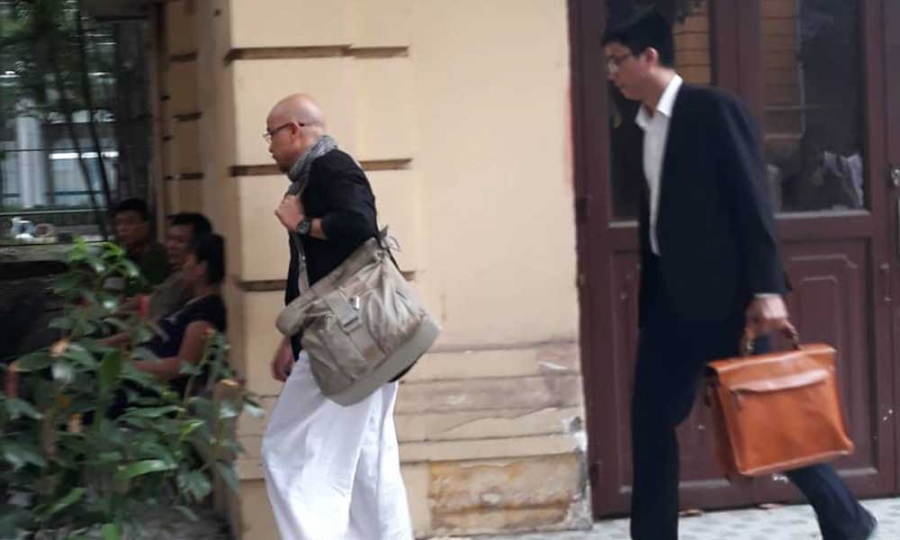 Ông vẫn giữ nguyên trang phục như đã đến phiên xử lần trước với chiếc quần thụng màu trắng, giày trắng, áo vest đen. Chủ tịch Tập đoàn cà phê Trung Nguyên vẫn mang theo chiếc giỏ xách quen thuộc, cùng với chiếc khăn rằn quấn cổ.