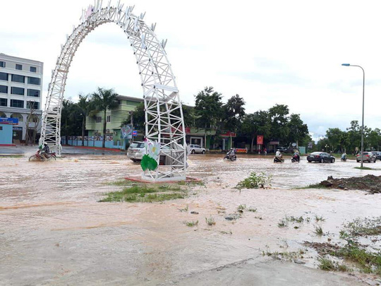 Mưa lớn khiến nhiều tuyến đường ở thị xã Thái Hòa bị ngập - Ảnh: Lý Cao