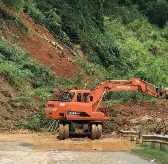 Mưa lớn khiến QL7 bị sạt lở nhiều đoạn gây ùn tắc kéo dài - Ảnh: Vi Hợi