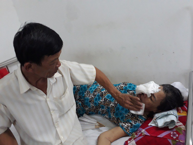 “Con mắt tôi chắc không còn cứu được nữa cô à. Nó đang lan dần khối u hết nguyên mặt, đêm nào nó cũng đau như cắt từng khúc thịt của tôi vậy”. Vừa kể bà Đào vừa kêu chồng mở miếng băng gạc cho chúng tôi xem, một phần nửa mặt đã biến mất chỉ còn những mảnh thịt lở loét, chảy máu.