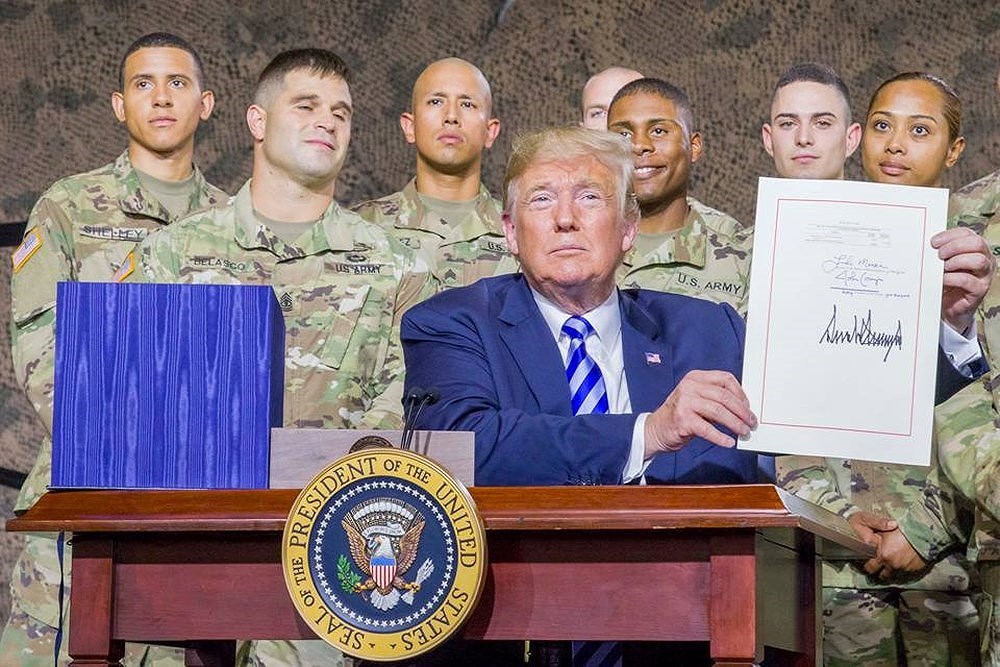 Tổng thống Mỹ Donald Trump đã ký ngân sách quốc phòng Mỹ cho năm tài chính 2019 với số tiền khoảng 716 tỷ USD, nhiều hơn 3% ngân sách quốc phòng năm 2018 (20 tỷ). Nguồn: Quân đội Mỹ