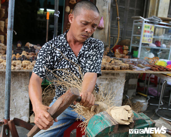 Thay vào đó, ai nấy ngạc nhiên khi chứng kiến anh dốc công dốc sức đi "săn" gốc tre và dĩ nhiên là để "hô biến" thành những ông Phúc - Lộc - Thọ đầy sống động. (Ảnh: Thanh Ba)