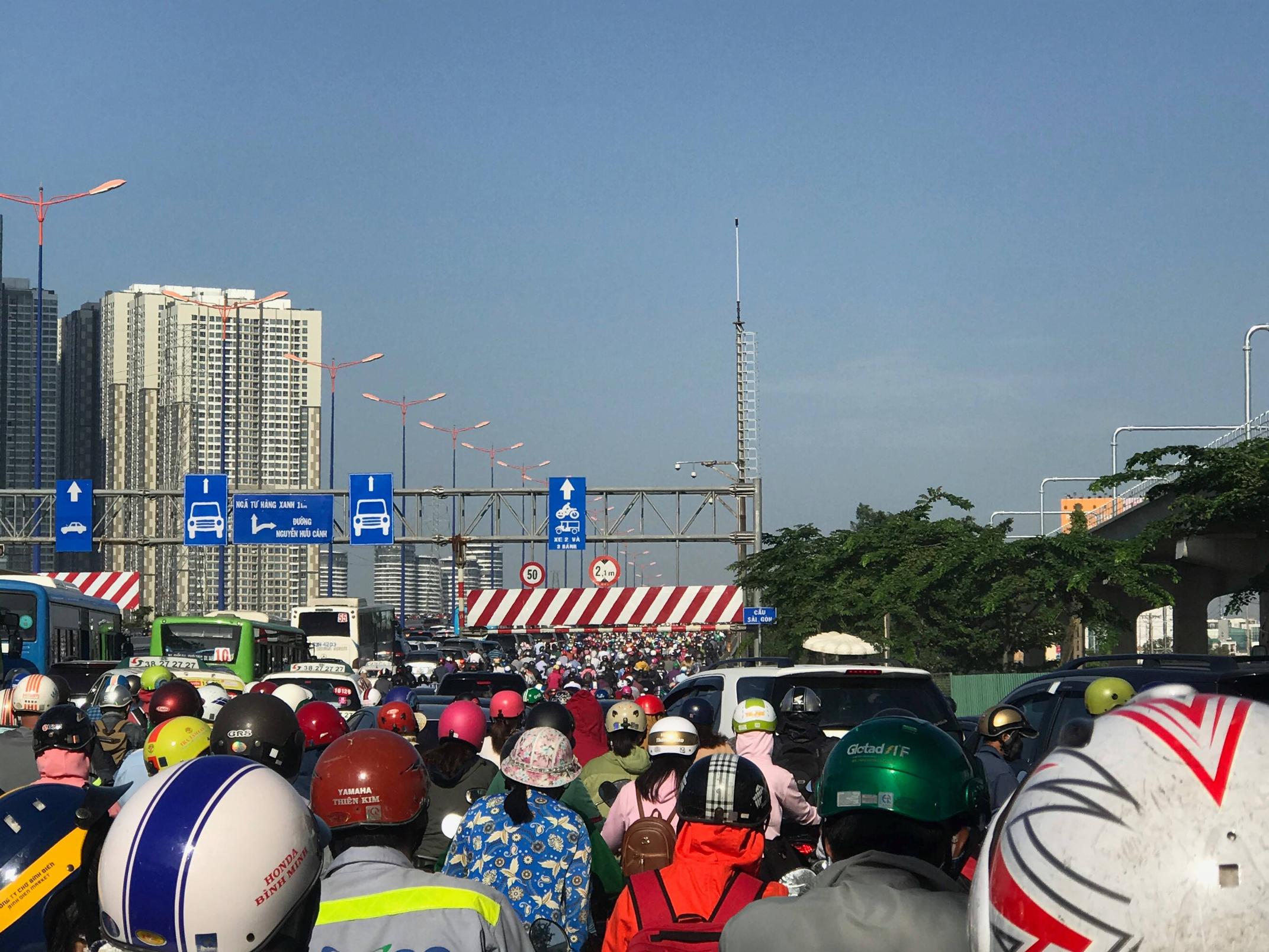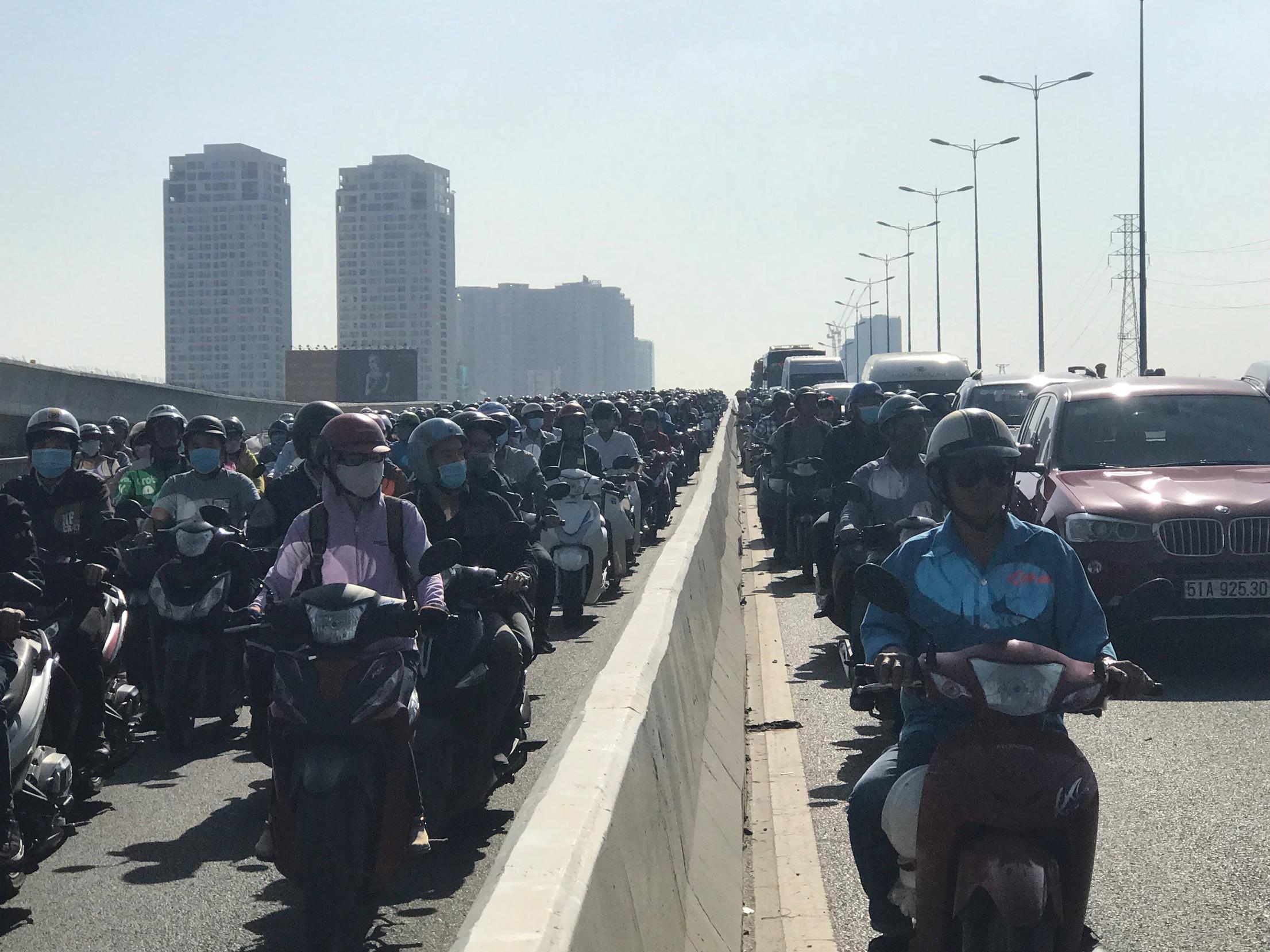 Tai nạn xảy ra trên cầu Sài Gòn, trục đường huyết mạch cửa ngõ phía Đông TP.HCM khiến giao thông tê liệt. Hàng nghìn phương tiện xếp hàng dài trên xa lộ Hà Nội nhích từng mét vào trung tâm TP.