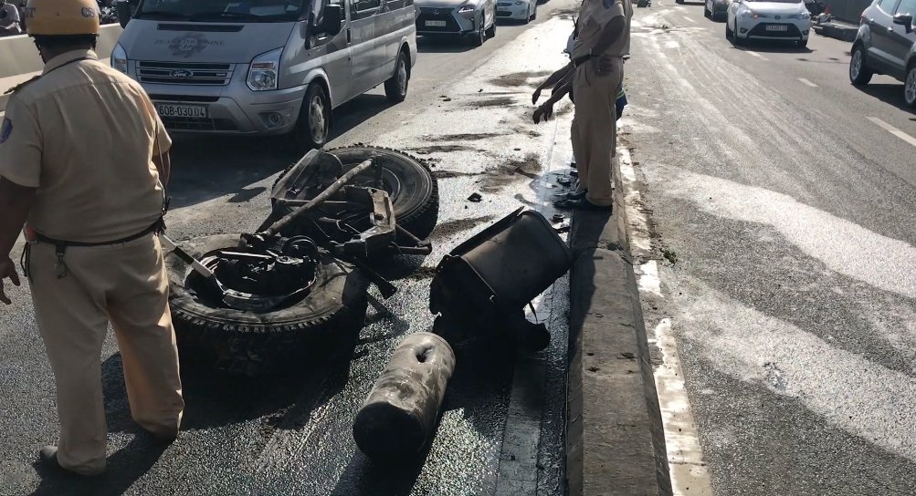 Vụ tai nạn xảy ra sáng 29/8, trên cầu Sài Gòn, đoạn giáp ranh giữa quận 2 và quận Bình Thạnh.