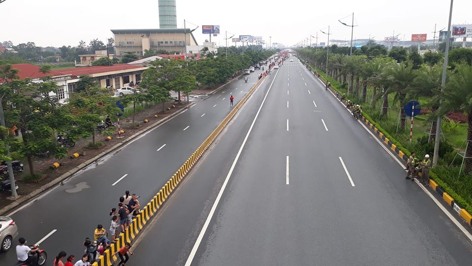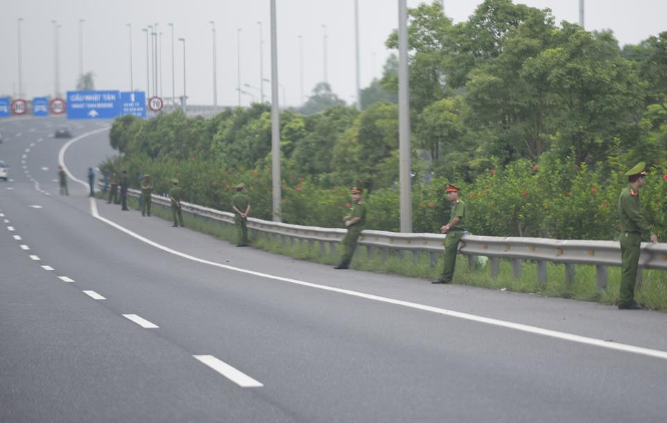 Dọc đường Võ Nguyên Giáp, Võ Chí Công, khoảng 10m có một chốt lực lượng chức năng đứng gác, bảo vệ an toàn, trật tự khi Olympic Việt Nam đi qua.