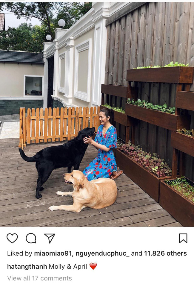 Sáng sơm tinh mơ, Hà Tăng đã khiến người hâm mộ thổn thức khi khoe ảnh vui đùa cùng hai chú cún cưng. Mẹ 2 con khoe sắc trong một thiết kế váy hoa rực rỡ tươi vui, tất cả như sáng bừng khi có sự xuất hiện của người đẹp. Tuy nhiên vóc dáng của Hà Tăng vẫn khá gầy, cô mặc thiết kế cổ V sâu để lộ phần cổ gầy xương xẩu.