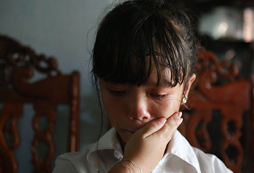 Nguyễn Thị Nhung bật khóc khi kể về bản thân. Ảnh: Nguyễn Hải.