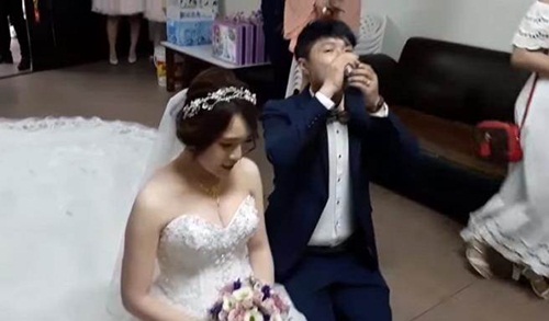 Tại Đài Loan, khi kết hôn có tập tục cô dâu, chú rể sẽ dâng trà cho cha mẹ vợ trước khi chú rể rước cô dâu về nhà mình. Đây là khoảnh khắc vô cùng cảm động vì cha mẹ cô dâu rất lưu luyến con gái mình. Tuy nhiên, mới đây, trong một đám cưới, chú rể do quá bối rối đã làm ra hành động khiến mọi người ai nấy đều kinh ngạc, không khí đang từ xúc động chuyển sang hài hước.