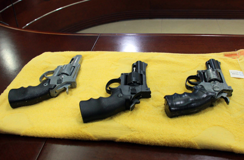 3 khẩu súng cảnh sát thu giữ của hai nghi phạm. Ảnh: Hoàng Nam.