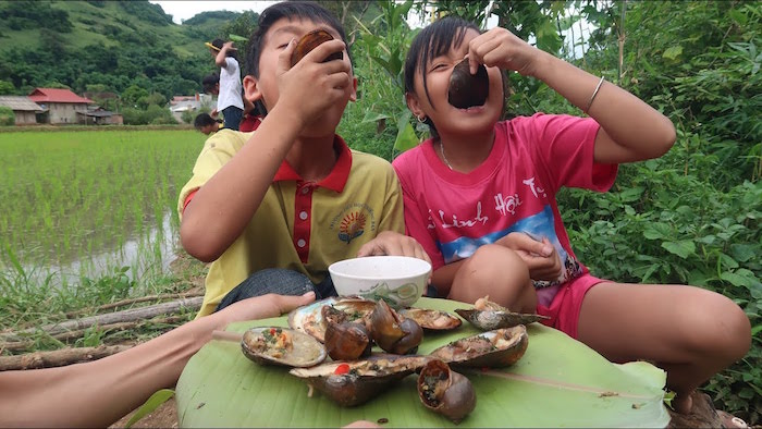 Nhiều người thường e ngại ăn con ốc bươu vàng và loài ốc này hay bị nhầm với ốc nhồi. Nhưng trẻ em ở vùng Tây Bắc vẫn đi bắt và ăn con ốc bươu vàng. Cùng xem trẻ em Tây Bắc đi bắt ốc và nướng ăn tại ruộng.