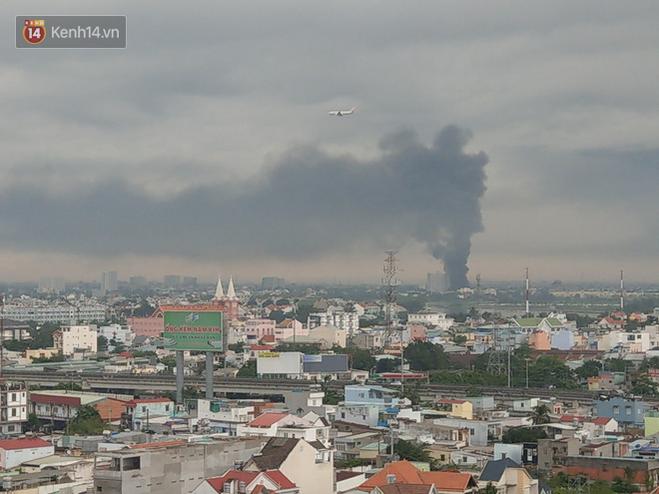 Vị trí cột khói bốc lên cũng gần khu vực các máy bay hạ độ cao để đáp xuống sân bay Tân Sơn Nhất. Ảnh: Trần Ngọc Linh.