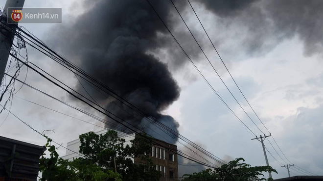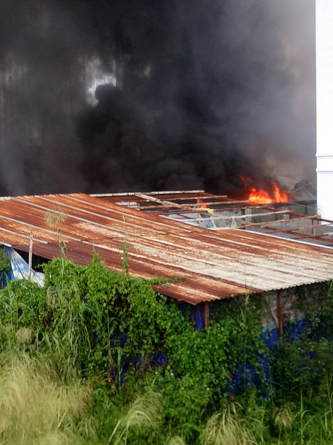 Do cháy tại nhà xưởng, các vật liệu dễ cháy gây khói nghi ngút.