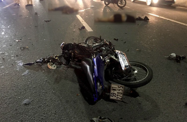 Hiện trường vụ tai nạn đôi nam nữ tử vong trên cầu Sài Gòn.