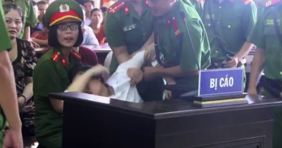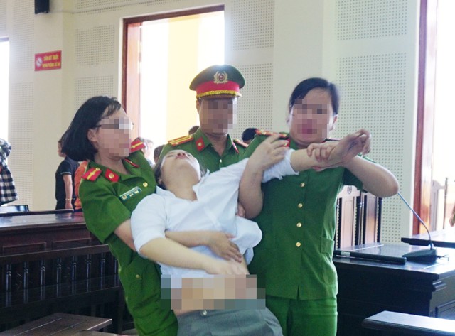 Bị cáo Hồ Thị Huệ ngất xỉu khi bị tuyên tăng hình phạt so với sơ thẩm.