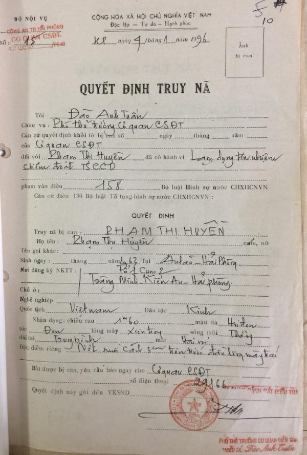 Lệnh truy nã đối với Phạm Thị Huyền cách đây hơn 22 năm.