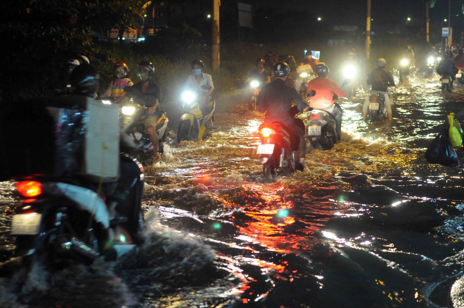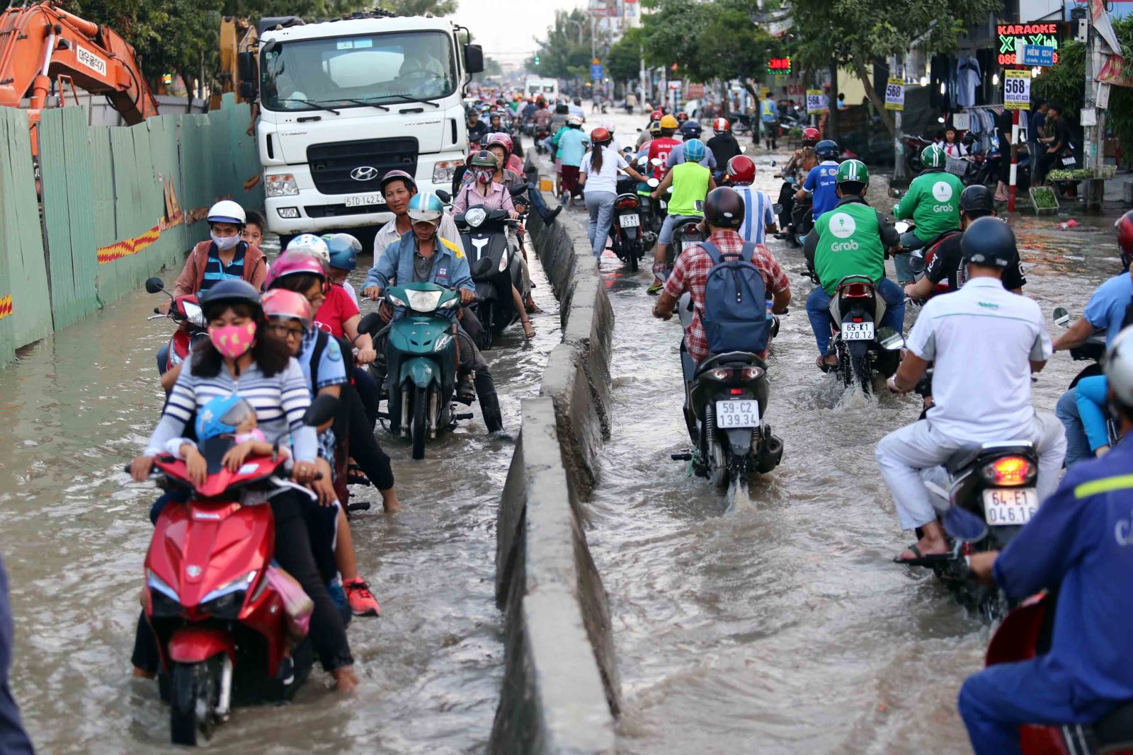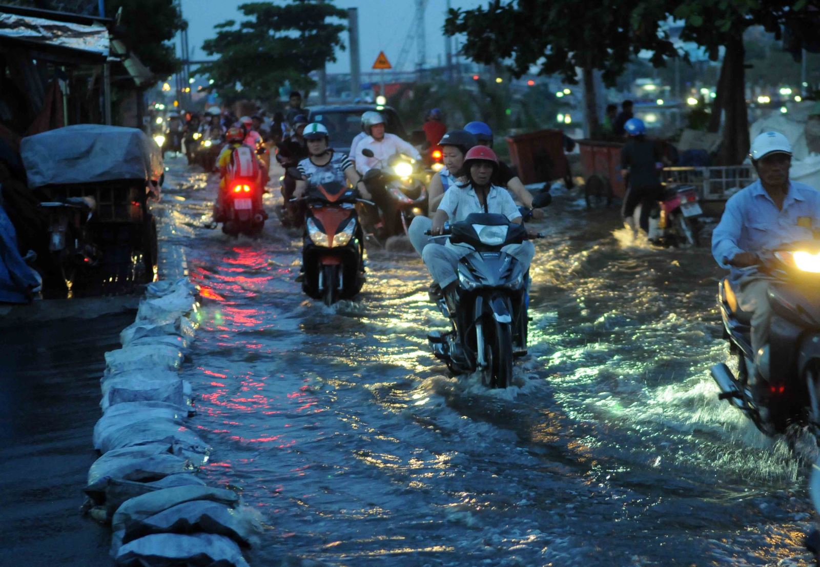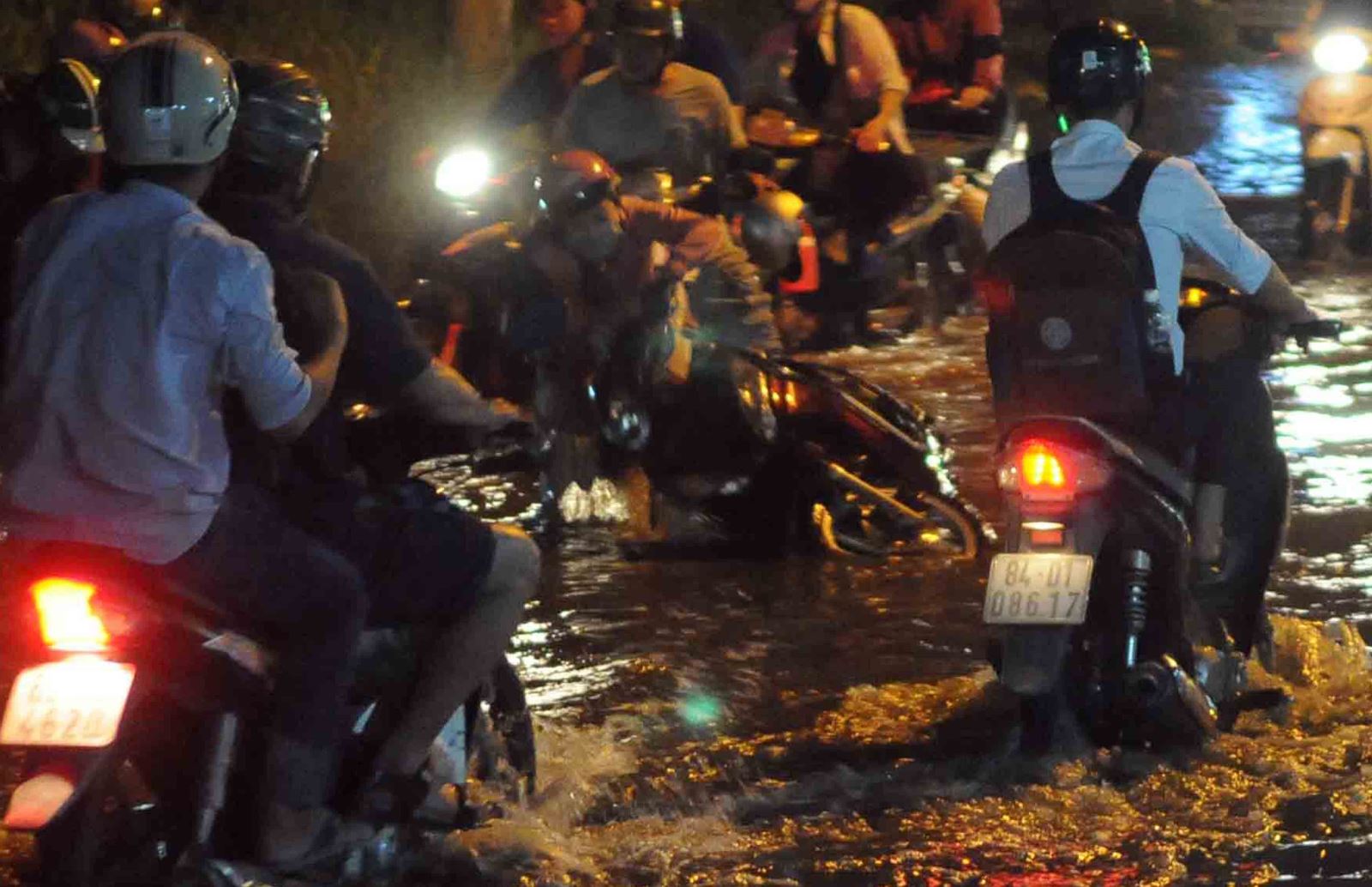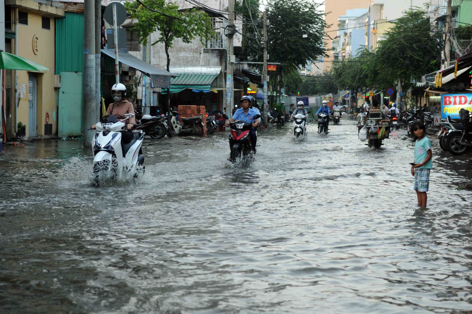 Hôm nay 9/10, triều cường vượt đỉnh trên 1m65. Nhiều tuyến đường ở các quận, huyện trên địa bàn TP Hồ Chí Minh ngập nặng, nhiều người đi xe máy ngã nhào trong biển nước. Cuộc sống của người dân bị ảnh hưởng nghiêm trọng.