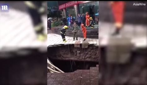 Đoạn video do camera giám sát từ một cửa hàng gần hiện trường cho thấy các nạn nhân không thể chạy tới nơi an toàn trước khi bề mặt dưới chân họ sụt xuống. Một đoạn video khác cho thấy hố tử thần tiếp tục sụt lún khi các nhân viên cứu hộ làm việc bên dưới.
