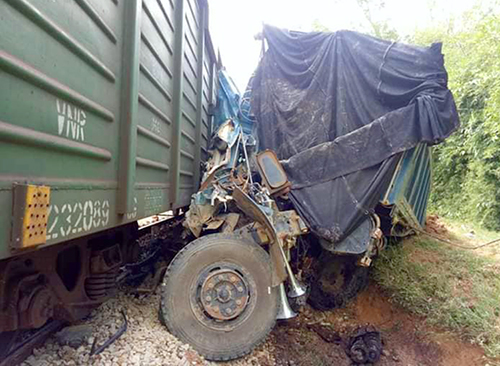 Old  Default Cố băng qua đường sắt, ô tô tải bị tàu hàng đâm nát bét