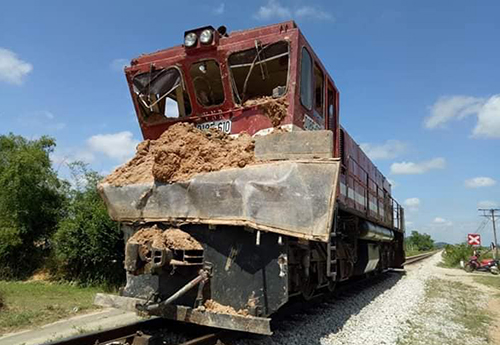 Đầu máy tàu hàng hư hỏng nặng. Ảnh: Dũng Boss