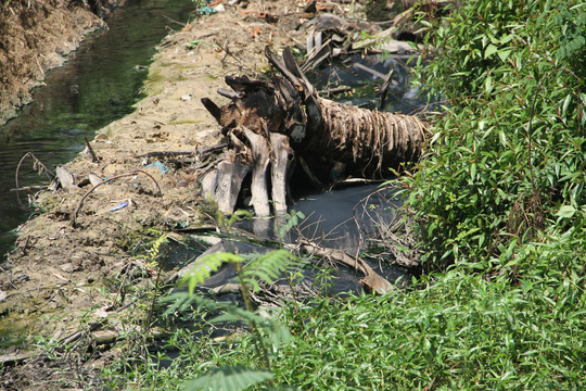 Kênh Đồng Đế, nơi phát sinh mùi hôi thối khiến môi trường xã Cát Trinh bị ô nhiễm nghiêm trọng