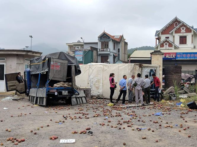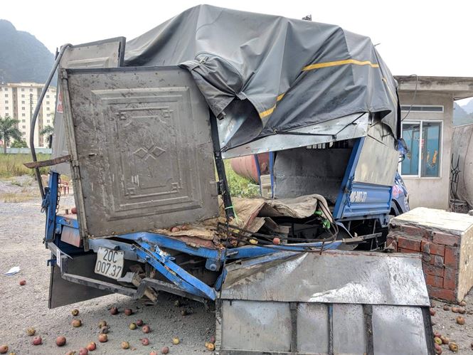 Sau va chạm, xe ô tô đầu kéo bị lật sang bên phải, xuống vỉa hè va chạm với xe tải 14c-24431 đang đỗ bên đường (hướng HL-CP). Ở gần xe tải có 1 người dân và 2 công nhân đang trồng cây (đi xe tải 14c -24431). Vụ tai nạn khiến 1 người chết tại chỗ, 2 người bị thương nặng. Rất may, tất cả hành khách trên xe khách an toàn.