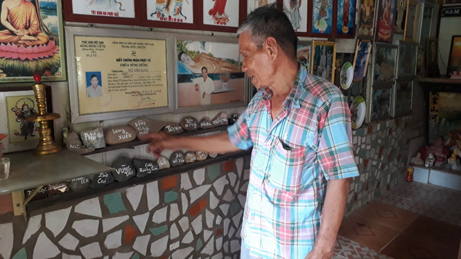 Ông cho hay vợ chồng ông có 6 con trai và 2 con gái. Hiện tại, các con của ông đều có công ăn việc làm ổn định và ông cũng có tích luỹ nên thời gian gần đây ông thường đi du lịch. Khi đến mỗi địa danh, ông đều đem về một viên đá đẹp và ghi nắn nót tên địa danh đó trên viên đá rồi lưu giữ lại cẩn thận.