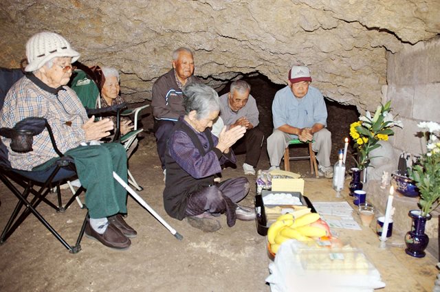 Okinawa nổi tiếng với những hang động bị ma ám bỏ lại sau trận chiến trong thế chiến II. Vào cuối cuộc chiến, binh sĩ Nhật Bản được hướng dẫn tự sát thay vì đầu hàng quân đội Mỹ. Nhiều người dân cũng tự sát cũng chung lý do như vậy trong nhiều hang động khác nhau trên khắp Okinawa.