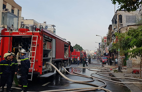Phòng Cảnh sát PCCC Công an TP HCM điều 10 xe cùng hơn 100 chiến sĩ đến hiện trường.