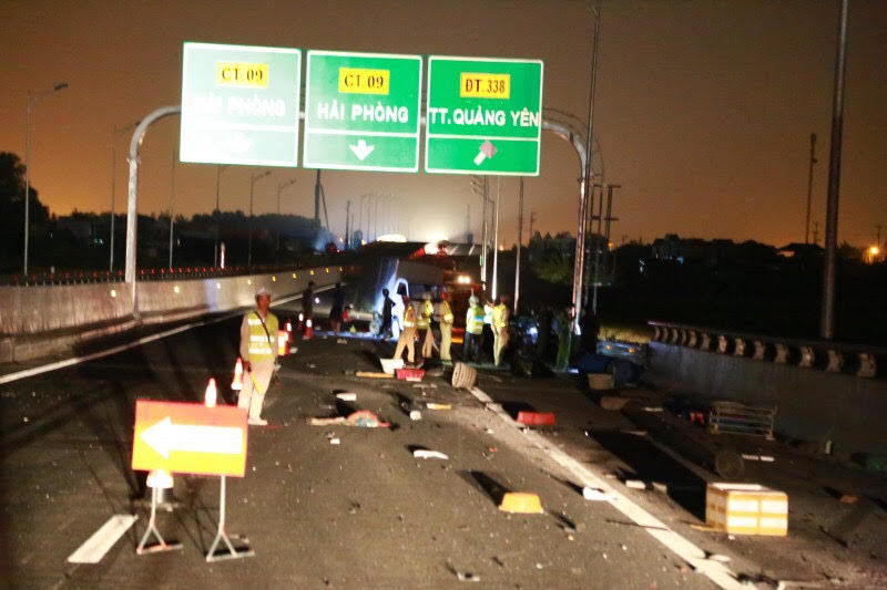 Công an TX Quảng Yên (Quảng Ninh) cho biết, vụ tai nạn xảy ra vào hồi 1h sáng nay tại Km 13+750 thuộc cao tốc Hải Phòng - Quảng Ninh (đoạn qua phường Phong Hải), cách trạm thu phí cầu Bạch Đằng 1km.