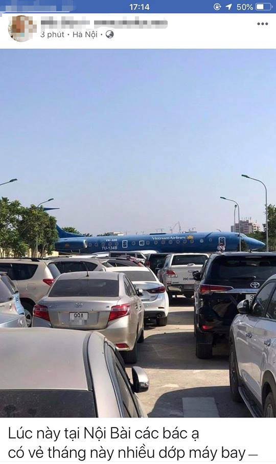 Tài khoản đưa tấm ảnh lên mạng còn chú thích: "Lúc này tại Nội Bài các bác ạ, có vẻ tháng này nhiều dớp máy bay".