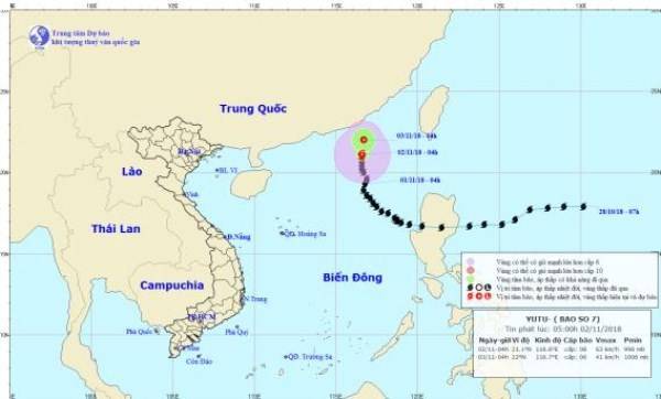 Trung tâm Dự báo Khí tượng Thủy văn quốc gia, cơn bão số 7 đang tan dần và suy yếu thành áp thấp nhiệt đời. Vào hồi 1 giờ ngày 2/11, vị trí tâm bão số 7 ở vào khoảng 20,8 độ Vĩ Bắc; 116,6 độ Kinh Đông, cách quần đảo Hoàng Sa 630 km về phía Đông Bắc. Sức gió mạnh nhất vùng gần tâm bão mạnh cấp 8 (60-75 km/giờ), giật cấp 10. Phạm vi gió mạnh cấp 6, giật cấp 8 trở lên khoảng 150 km tính từ vùng tâm bão.