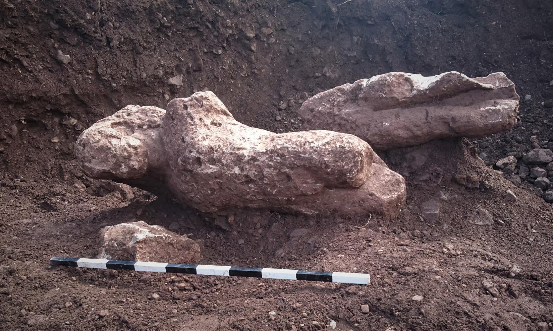 Cho đến nay, tổng cộng có bốn bức tượng đá vôi to như người trong tình trạng rất tốt đã được khai quật, bên cạnh một đế tượng hình tam giác.