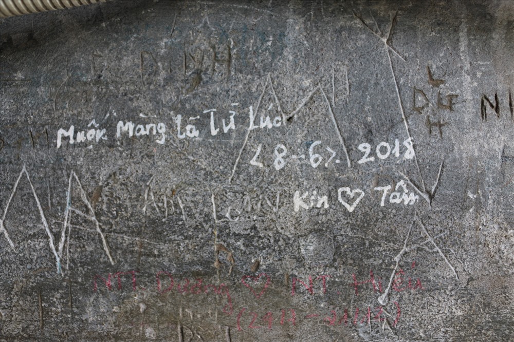 Nhiều người thản nhiên viết lên di tích.