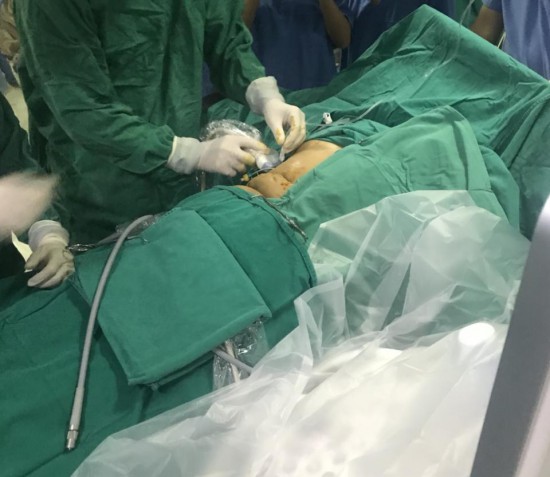 Các bác sĩ BVĐK Nông nghiệp với sự phối hợp của BV Đại Học Y Hà Nội đã thực hiện can thiệp Nội soi tán sỏi đường mật qua da bằng laser công suất cao cho bệnh nhân.