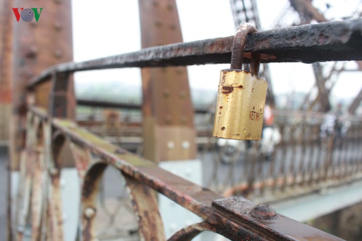 Nhiều ổ khóa cũng được treo lủng lẳng ở cầu Long Biên.