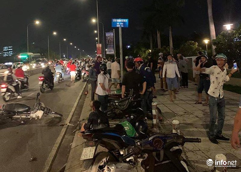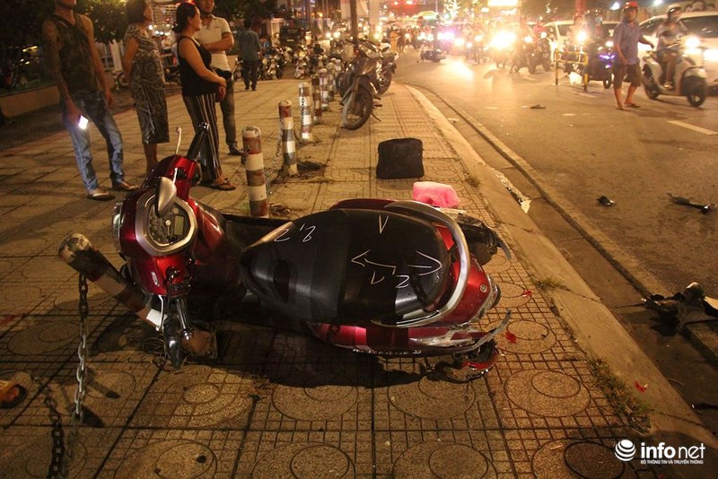 4 chiếc xe máy khác nữa bị ô tô "điên" tông liên hoàn nằm lăn lóc trên đường.