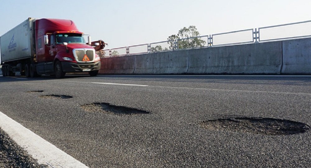 Xa lộ Đà Nẵng – Quảng Ngãi được đưa vào sử dụng chưa lâu nhưng nay đã xuất hiện nhiều chỗ lún sụt, ổ gà, ổ trâu, khiến công luận chất vấn về phẩm chất công trình.