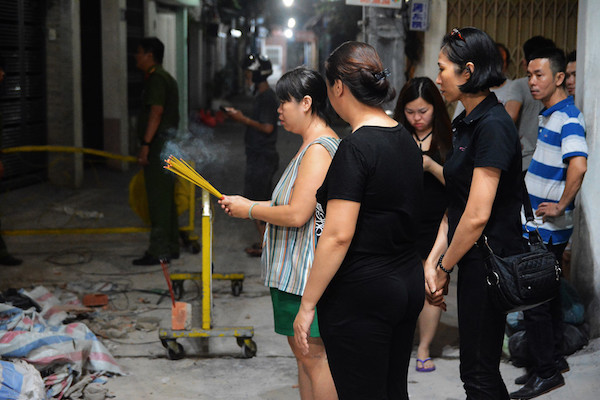 1 giờ sáng 23.11, nhiều người dân trong con hẻm vẫn còn thức thắp nhang cầu nguyện cho người xấu số