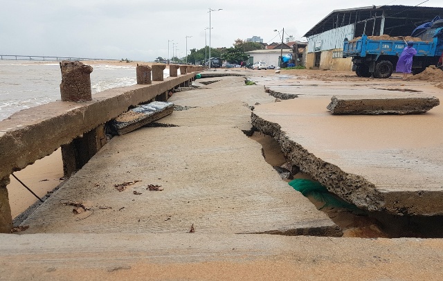 Bê tông bờ kè Bạch Đằng (Tuy Hòa) bị lún sụp.