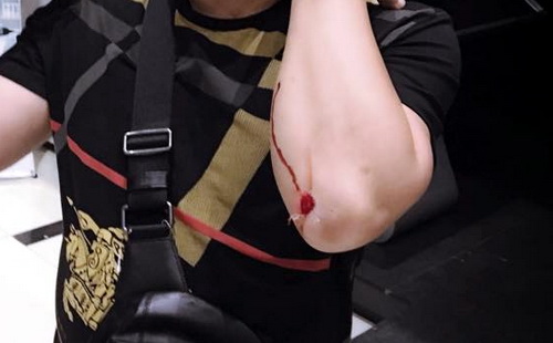 Nam hành khách bị thương sau sự cố VJ 356 rơi bánh. Ảnh: Thanh Nga.