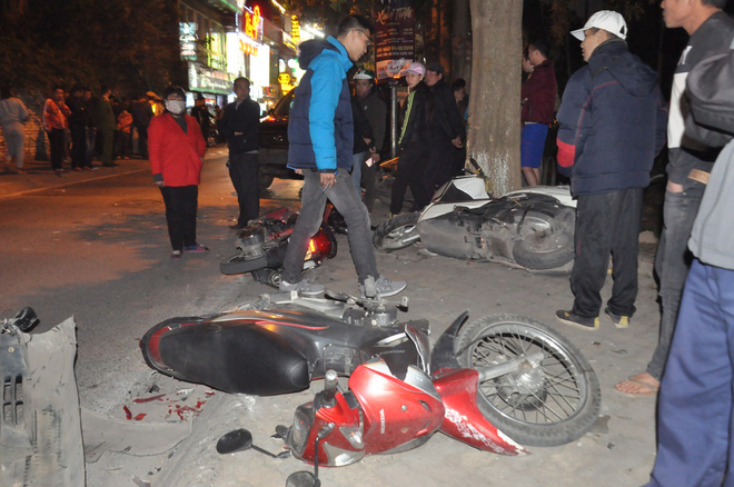 Sau đó, chiếc xe tiếp tục lao phía trước đến đoạn số nhà 81 thì đâm vào hông xe taxi của hãng Phù Đổng và 4 xe máy.