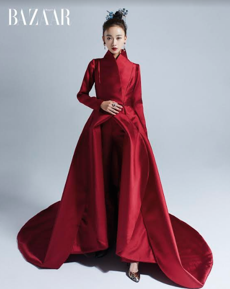 Triệu Vy xuất hiện trang bìa của Harper's Bazaar Việt Nam tháng 1 năm 2019 trong trang phục của NTK Tuyết Lê.