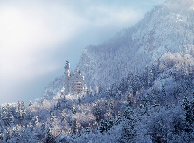 Lâu đài Neuschwanstein, Bavaria, Đức: Được xây dựng vào năm 1886, lâu đài Neuschwanstein được sử dụng làm bối cảnh cho phim của hãng Disney. Lâu đài trông huyền bí hơn khi được tuyết bao phủ vào mùa đông.