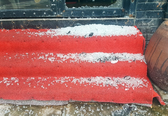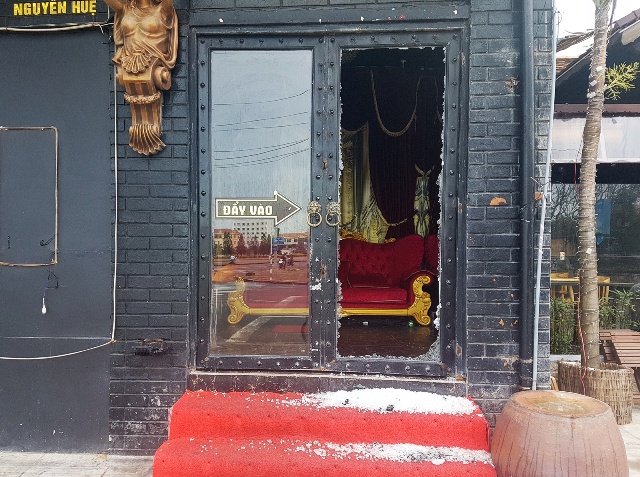Cửa kính quán Bar & Lounge bị vỡ do súng tự chế.
