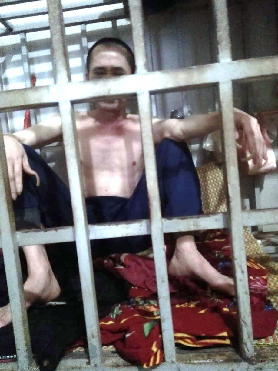 Hình ảnh ông Lê Văn Năm lúc đang bị nhốt trong "chuồng cọp" do gia đình chụp lại.