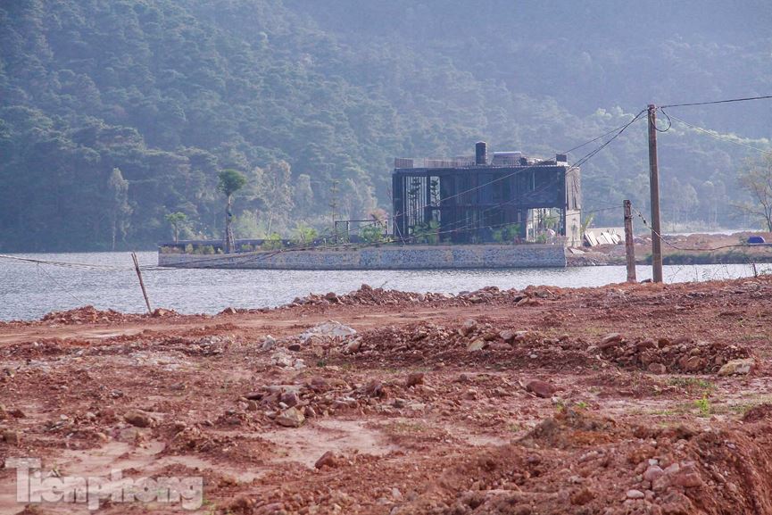Công trình "bất động" khi xây dựng dở ngay hồ Đồng Đò sau "lệnh" thanh tra.