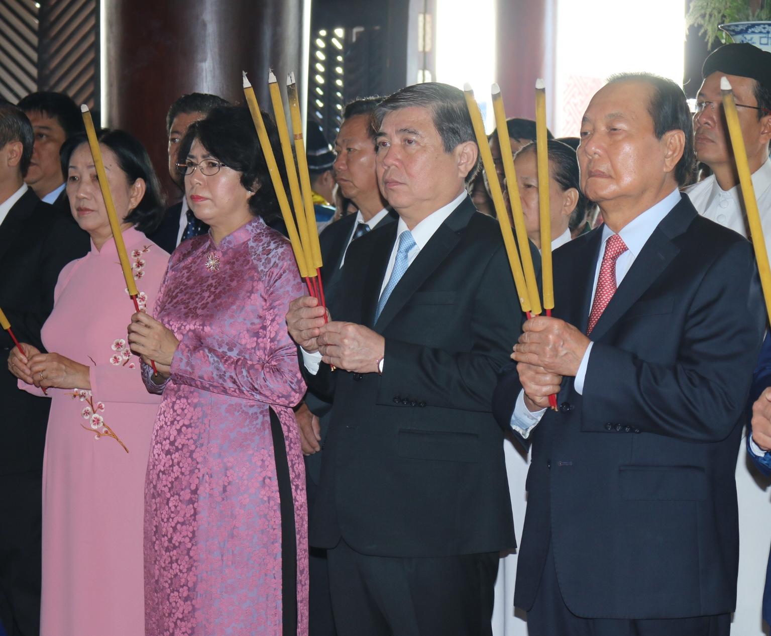Chủ tịch TP.HCM Nguyễn Thành Phong (thứ 3 từ trái qua) cùng các lãnh đạo nghiêm trang làm lễ...