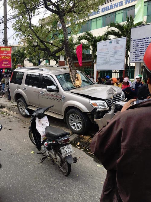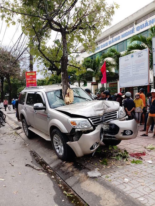 Theo thông tin ban đầu, vào thời điểm trên, xe ô tô 7 chỗ mang biển số Quảng Nam lưu thông từ đường Hùng Vương về đường Huỳnh Thúc Kháng. Khi đến trước cổng trường Cao đẳng nghề Quảng Nam (đường Huỳnh Thúc Kháng), xe ô tô bất ngờ mất lái, lao lên vỉa hè đâm gãy đôi cây hoa sữa.
